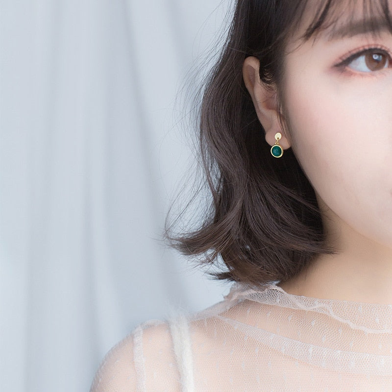 Brinco Dourado Pingente Pedra Verde
