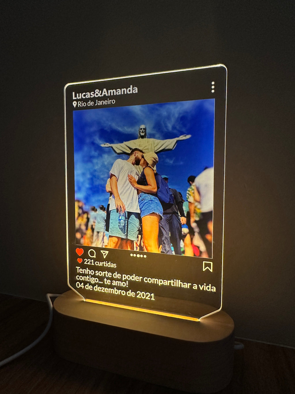 Surpreenda o amor da sua vida com a nossa Luminária Personalizável.
